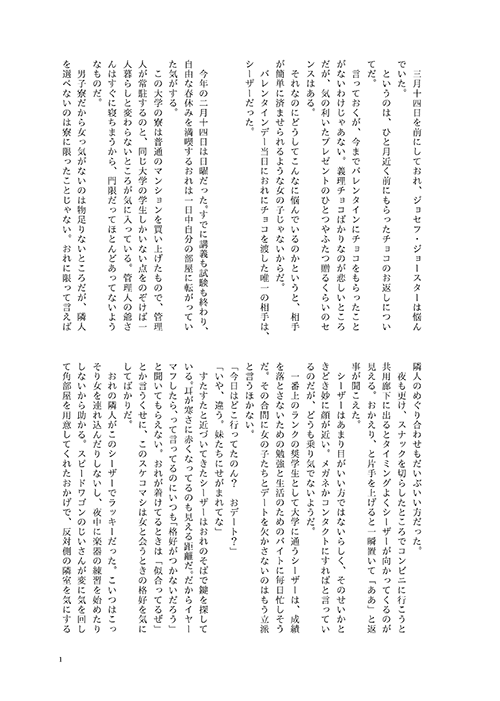 淫魔ジョセフと振り回されるシーザーがベッドや玄関や噴水前でえっちなことをするお話。